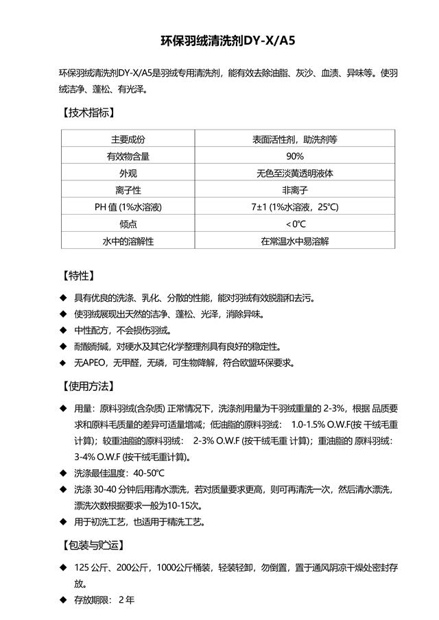 环保羽绒清洗剂DY-X/A5