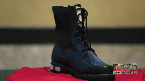 我国第一款全军配发的军靴——07作战靴连续弯折4万次,没有裂纹也不开胶,还可以抵挡相当于120公斤力量的穿刺。