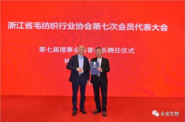 会议选举产生了浙江省毛纺织行业协会第七届会员代表大会理事会、监事会。浙江羊绒世家服饰有限公司董事长蒋庆云当选为协会第七届会长。浙江新澳纺织股份有限公司总经理周效田当选为协会第七届常务副会长。宁波中鑫毛纺集团有限公司总经理马宝、浙江真爱毯业科技有限公司总裁刘元庆、嵊州雅戈尔毛纺织有限公司总经理张明杰、浙江红太阳毛纺织有限公司总经理杨少位、浙江神州毛纺织有限公司总经理牟剑青、浙江富润纺织有限公司总经理钱培德、浙江中鼎纺织股份有限公司总裁朱杰、浙江百德纺织有限公司董事长许志伟、浙江依蕾毛纺织有限公司总经理沈国良、浙江博泰纺织有限公司董事长梁荣、浙江沃棆特实业集团有限公司董事长章惠新、浙江凌龙纺织有限公司董事长董元龙、康赛妮集团有限公司常务副总薛正利、湖州珍贝羊绒制品有限公司总经理邱雪芳当选为副会长。航天通信控股集团股份有限公司李勇当选为协会第七届秘书长。浙江永金生物科技有限公司总经理朱建坤当选为协会第一届监事会监事长。