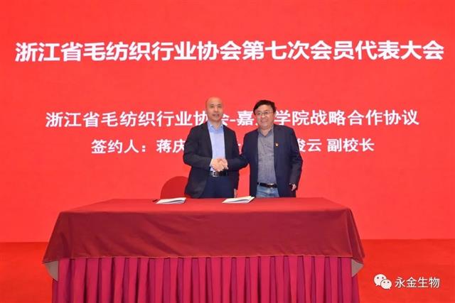 会上,浙江省毛纺织行业协会蒋庆云会长还与嘉兴学院胡俊云副校长签署《战略合作协议》,以浙江省毛纺织产业技术创新需求为基础,着力搭建产业领域协同创新、联合攻关、资源共享、共谋发展的平台,为建设科技强省、制造强省、生态强省提供有力支撑。