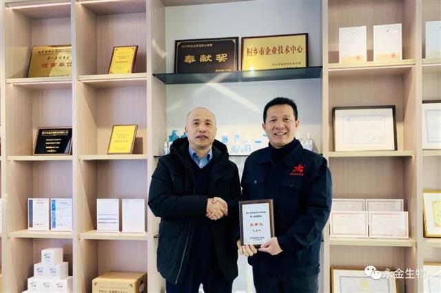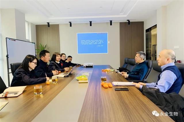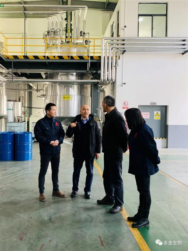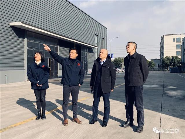 12月30日,浙江省毛纺织行业协会蒋庆云会长、李勇秘书长莅临永金生物考察指导工作,公司总经理朱建坤和相关人员热情接待并陪同参观工厂。