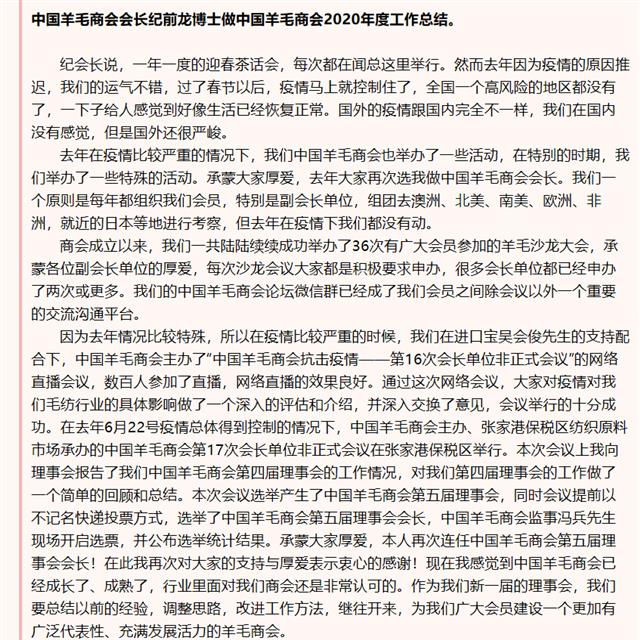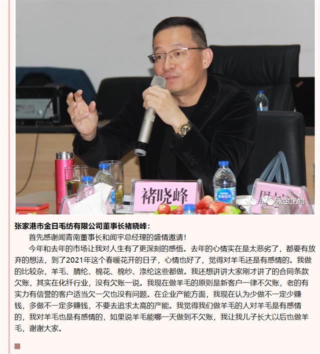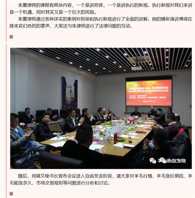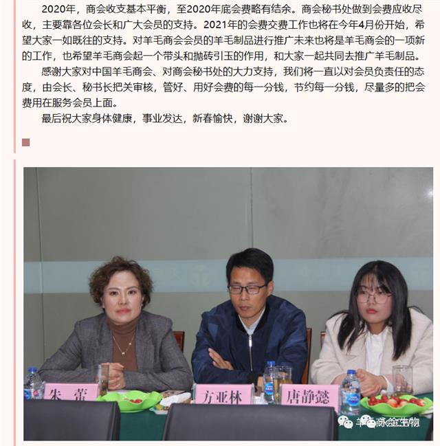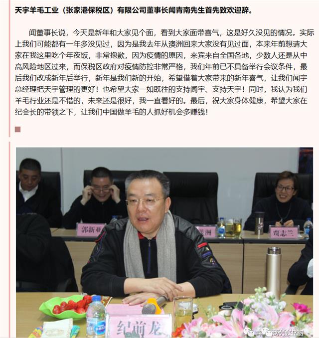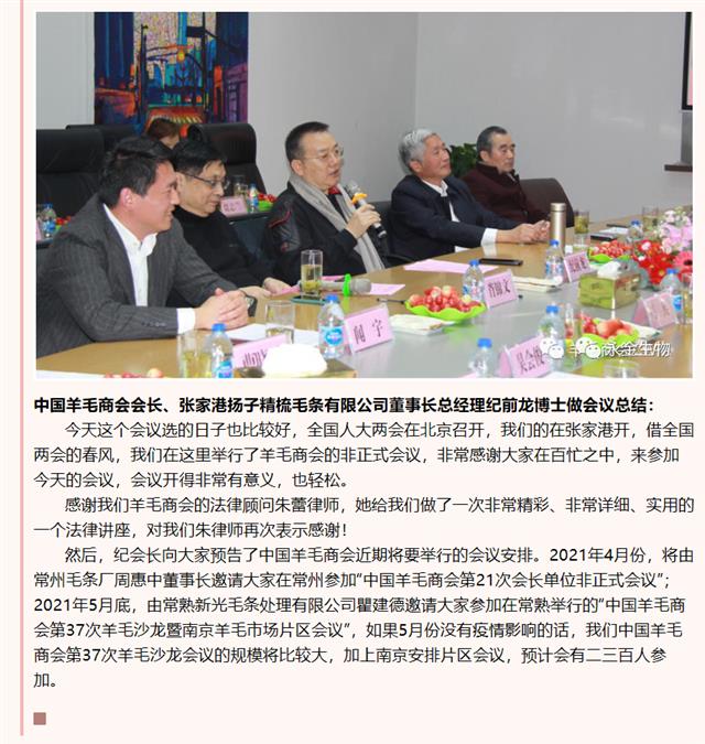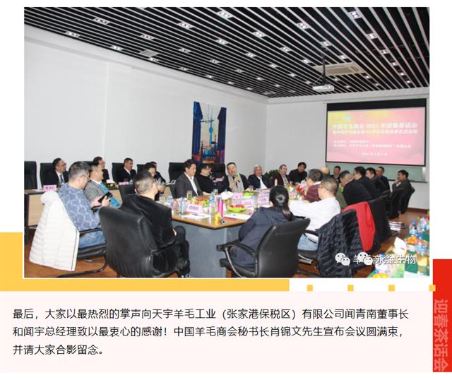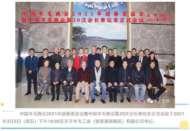 中国羊毛商会2021年迎春茶话会暨中国羊毛商会第20次会长单位非正式会议在天宇羊毛工业(张家港保税区)有限公司举行