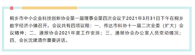 桐乡市中小企业科技创新协会第一届理事会第四次会议召开