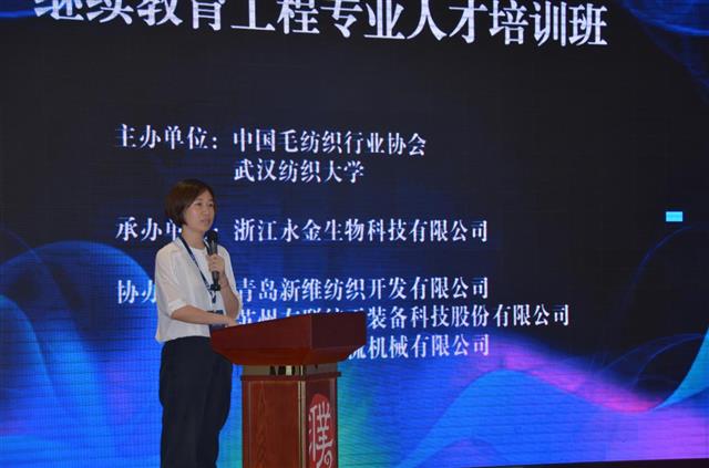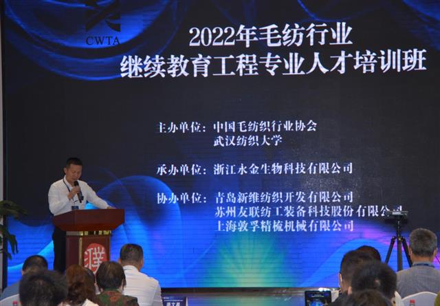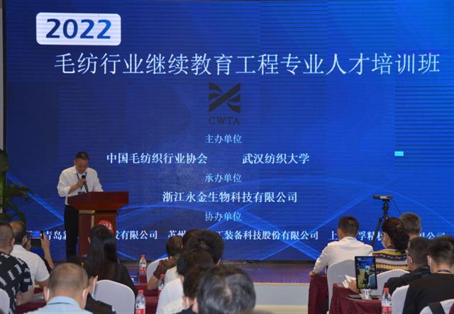 2022年9月16日,由中国毛纺织行业协会和武汉纺织大学主办、浙江永金生物科技有限公司承办的2022年“毛纺行业继续教育工程”专业人才培训班在桐乡濮院开课。培训班由中毛协副会长刘丹主持,此次培训集聚了来自全国各地毛纺行业的专家及学员们。