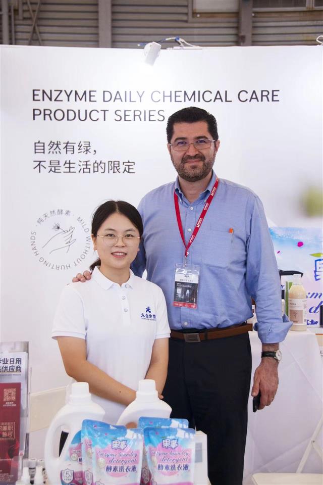 随着市场的全面放开,洗护产业逐渐朝着高新技术发展,市场竞争进入新赛道。浙江永金生物科技有限公司携酵素日化洗护产品,如酵素洗衣液、酵素洗洁精、酵素多功能清洁剂等,及代加工洗护品牌精彩亮相。