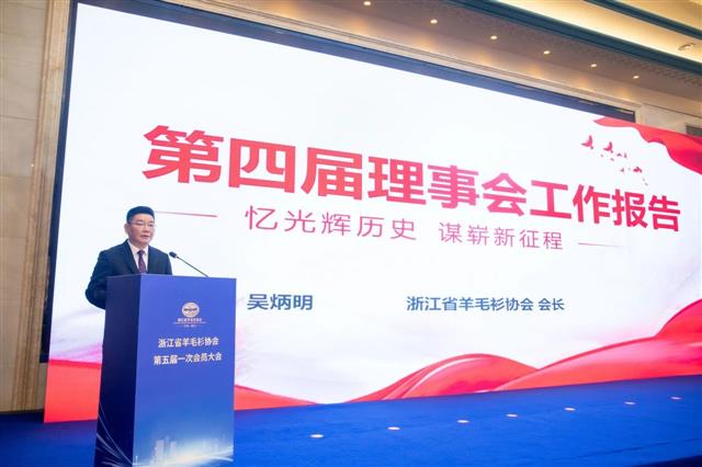 会长吴炳明作《浙江省羊毛衫协会第四届理事会工作报告》。他着重围绕党建引领、品牌活动、会员服务、行业发展、社会公益等五个方面,全面回顾总结了第四届理事会工作成果。
