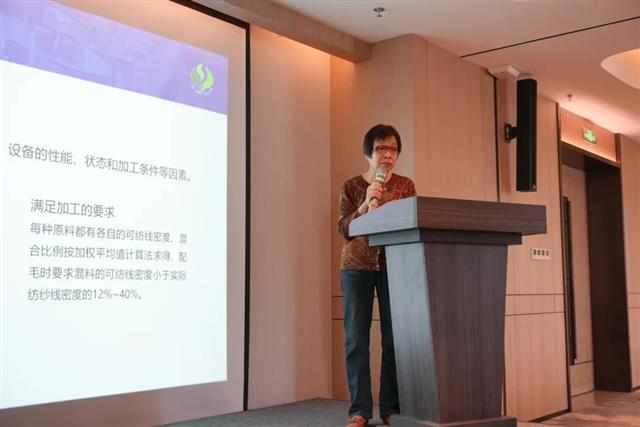 在培训会上,永金生物特聘专家金凤珊进行了专业授课。金工凭借其在纺织领域的深厚造诣和丰富经验,深入浅出地讲解了毛纺纺纱的核心技术与创新实践。毛加油技术作为提升毛纺产品品质的关键环节,也得到了金工的详细解读。她阐述了不同加油方式对纤维手感、可纺性及成品性能的影响。