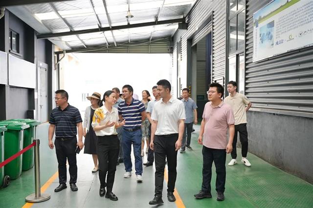 7月25日下午,桐乡市洲泉镇环卫中心沈斌沈主任带领无锡市新吴区新安街道环卫所20多位领导莅临永金生物科技公司指导工作,参观果蔬垃圾处理过程,以及公司生产的酵素产品和酵素车间。