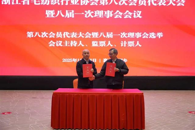 换届议程后,会议还举行了浙江省毛纺织行业协会与嘉兴大学的战略合作协议签署仪式,蒋庆云会长与嘉兴大学周宏伟副校长共同完成签约,为行业产学研融合按下 “加速键”。